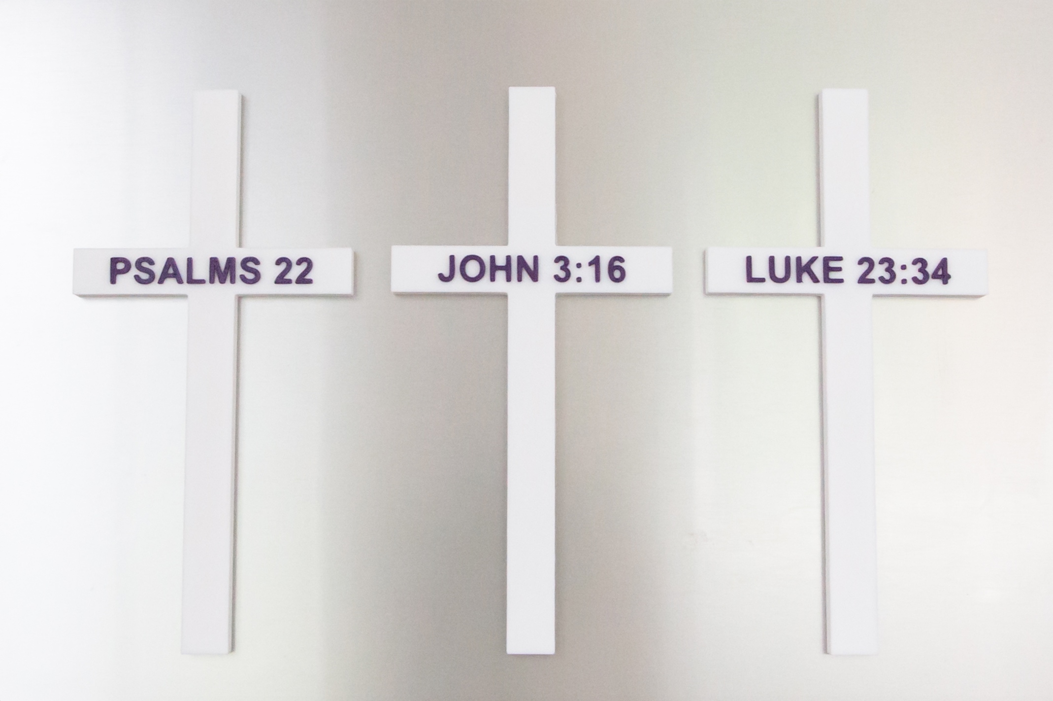 Bible verse cross fridge magnet. Customisable with whichever bible verse reference you would like.