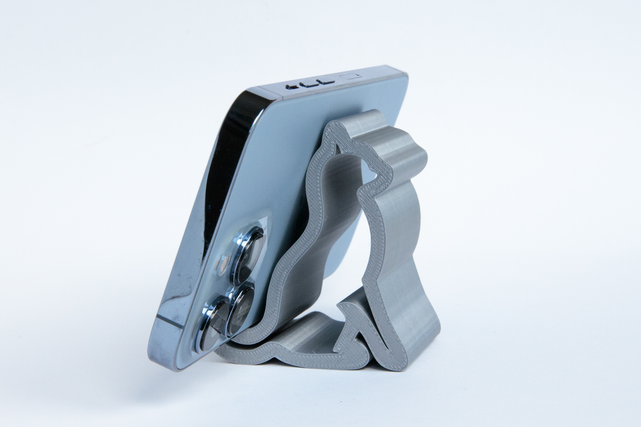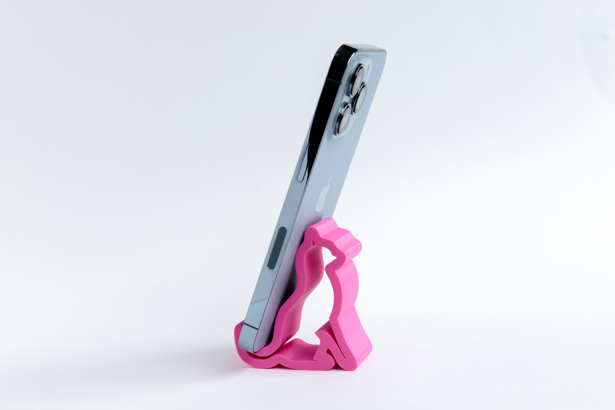 Designed to be used as a phone holder on a desk or flat surface, such as when doing video calls. The phone will sit in both horizontal and vertical positions. Size is approximately 7cm high, 4cm wide and 6cm deep.