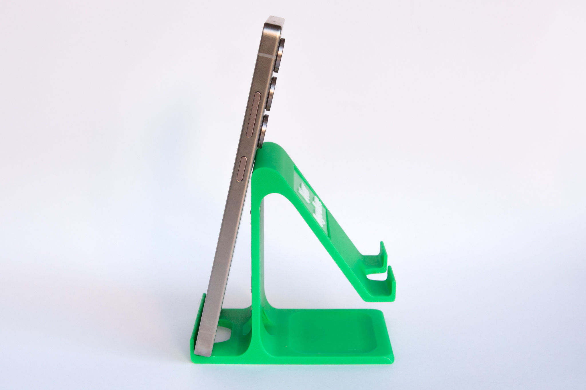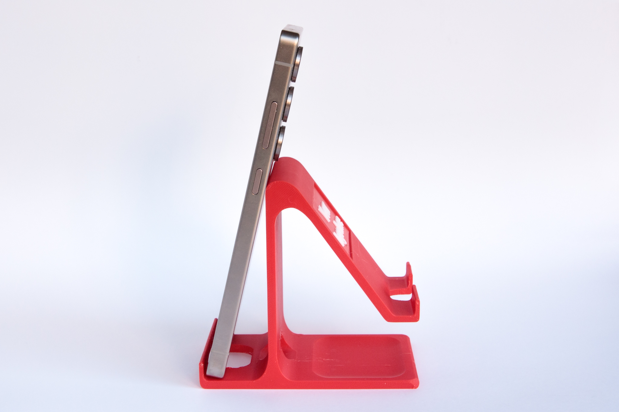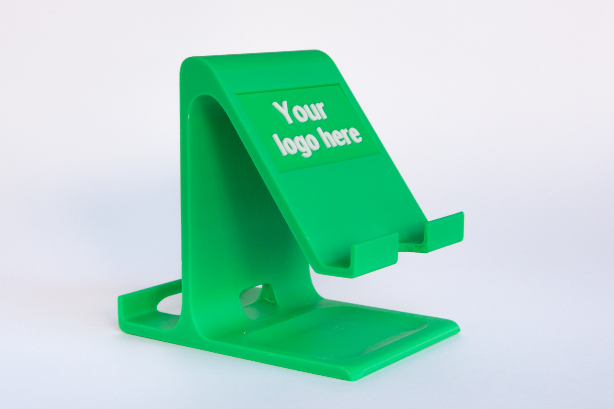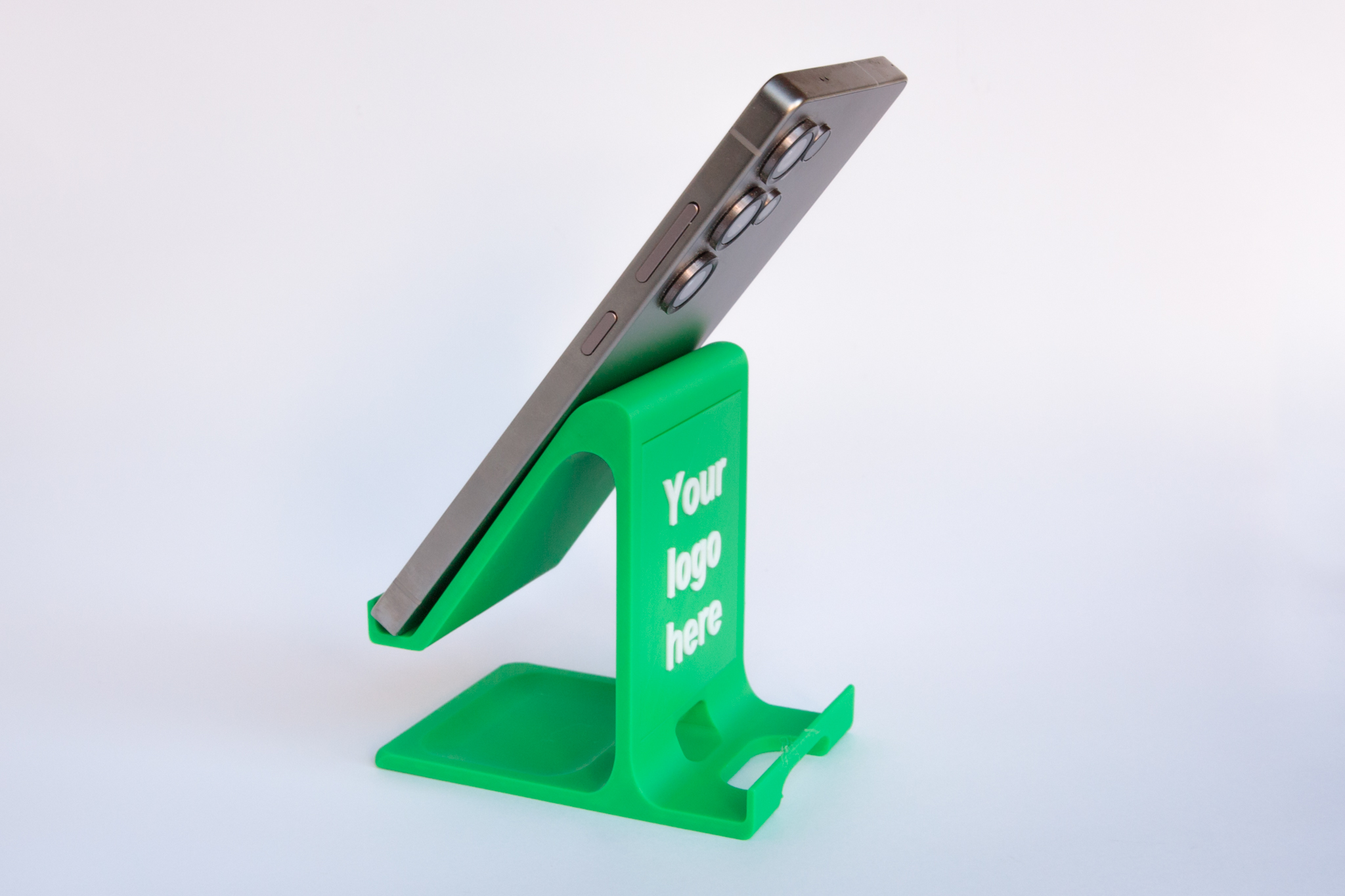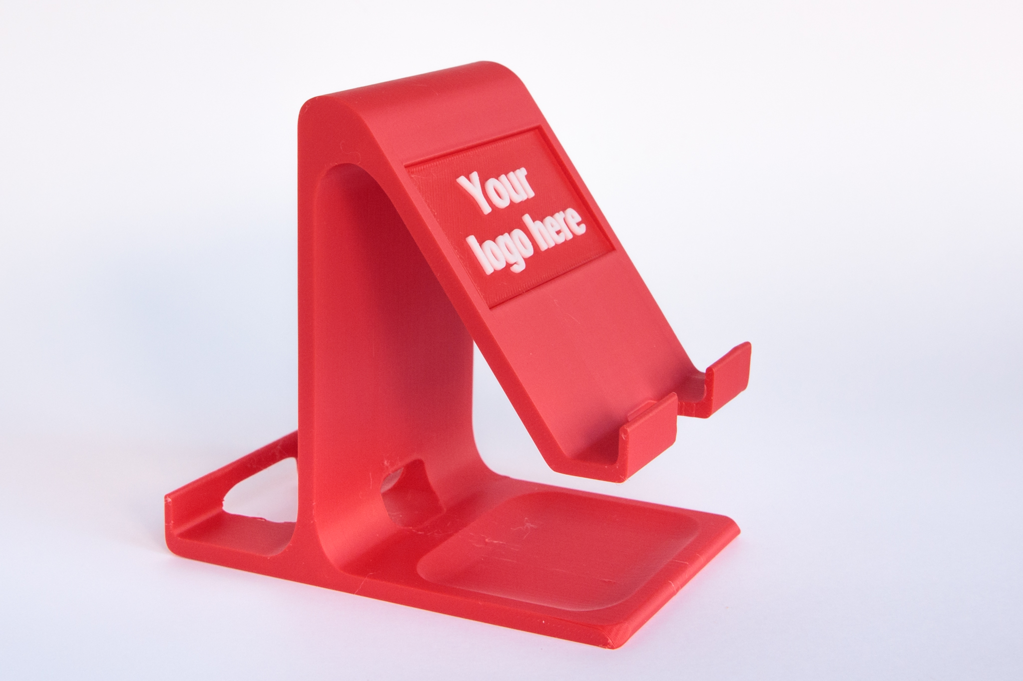 Customisable two-way phone holder which we can print with your logo or tagline on the vertical side and/or sloping side. There’s a selfie bar on the vertical side for a more flattering angle for video calls and selfies. There’s also a handy tray on the base which can be used to hold small items like SIM cards, SD cards or coins.