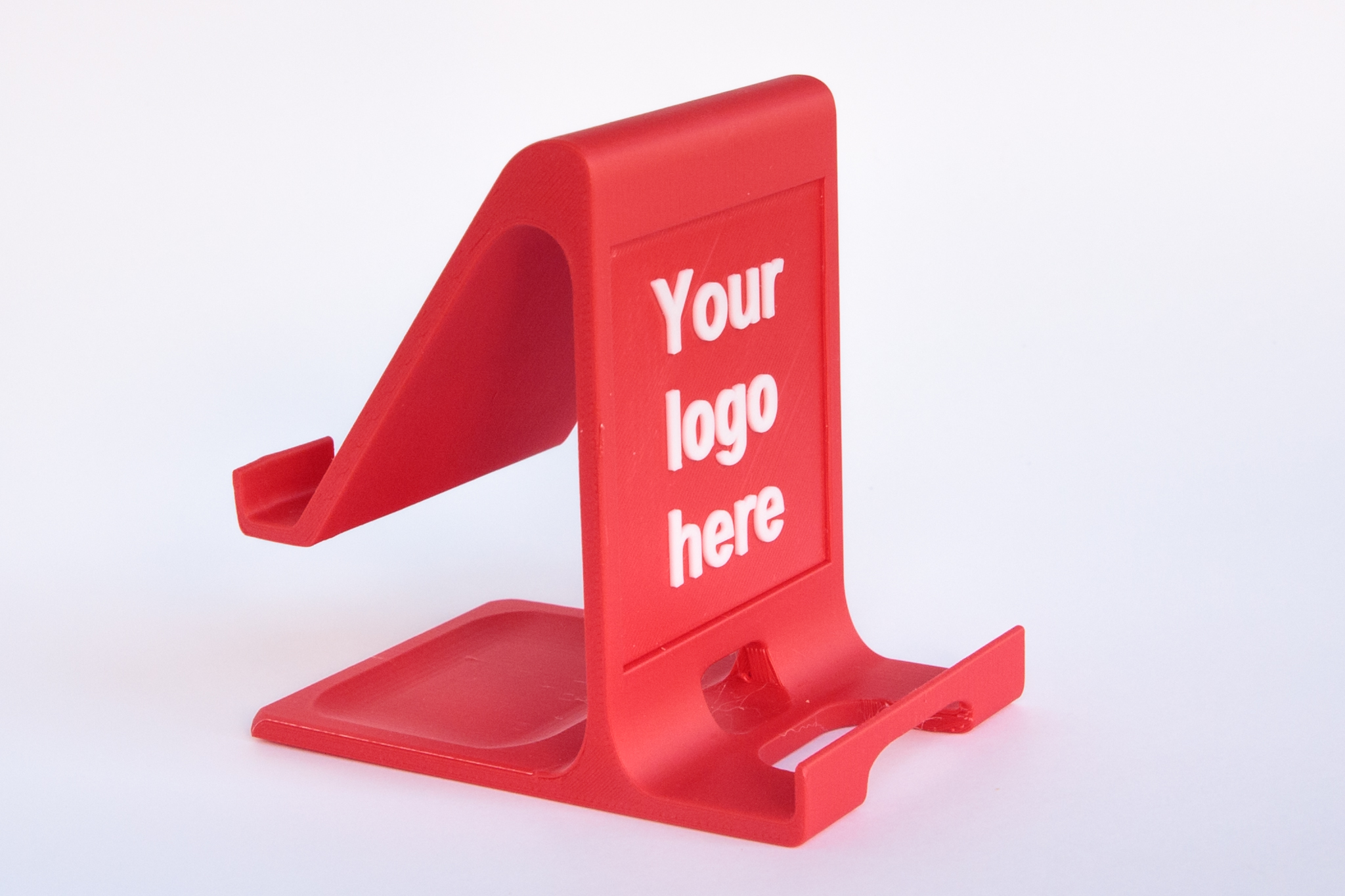Designed to be used as a phone holder on a desk or flat surface, such as when doing video calls, playing games, checking emails or watching videos. Phones will sit in both horizontal and vertical positions and there’s a hole for your charging cable when the phone is in the vertical position on the sloping side. Size is approximately 10cm high, 7cm wide and 10cm deep. The perfect phone holder to showcase your favourite team, organisation, charity or for corporate gifts with your company branding on to increase your brand presence.