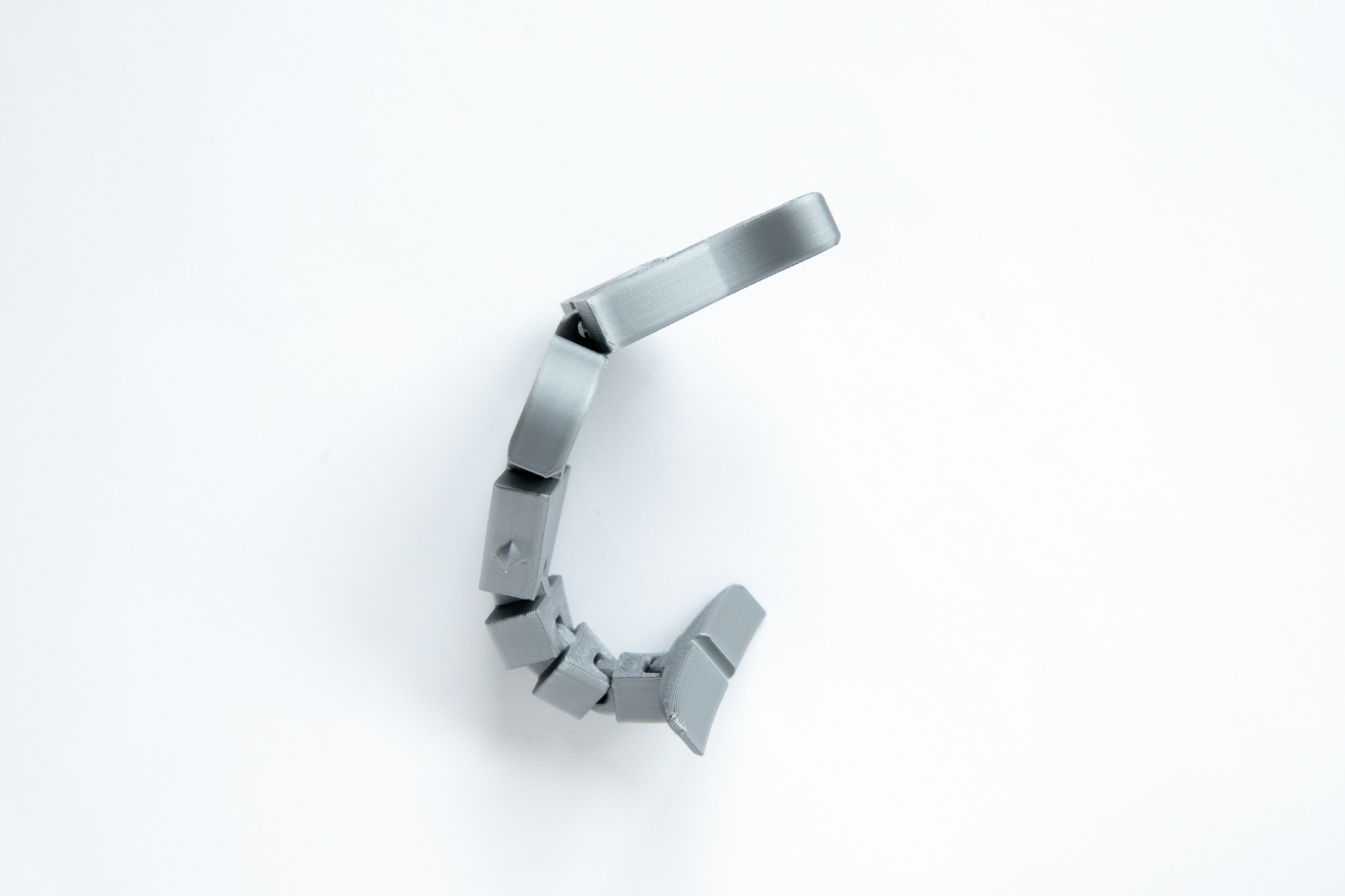 Flexible shark that can stand up on its own and has joints so it can flex horizontally and vertically. Size is approximately 14cm long, 5cm high and 1cm thick.